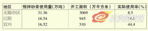 工地揚塵治理一直是市建設局的重點工作項目。與傳統(tǒng)的現(xiàn)拌砂漿相比,預拌砂漿在治理施工揚塵、節(jié)能減排、提高建設工程質量和施工工藝創(chuàng)新等方面有很強的優(yōu)勢。龔雁說,2013年8月26日無錫市人民政府發(fā)布《關于市區(qū)禁止現(xiàn)場攪拌砂漿的通告》,明確規(guī)定自2014年3月1日起,市區(qū)全部新開工工程建設項目禁止現(xiàn)場攪拌砂漿。“現(xiàn)實情況是江蘇省兄弟城市使用預拌砂漿的情況已逐步步入正軌,但我市的推廣應用工作進展緩慢。”為此,龔雁給出了一組數(shù)據(jù):