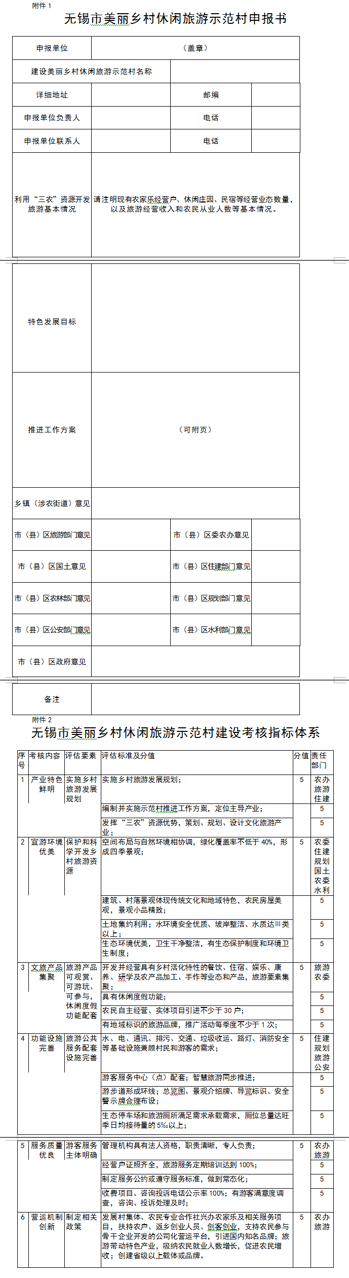 附件:1.無錫市美麗鄉(xiāng)村休閑旅游示范村申報書;