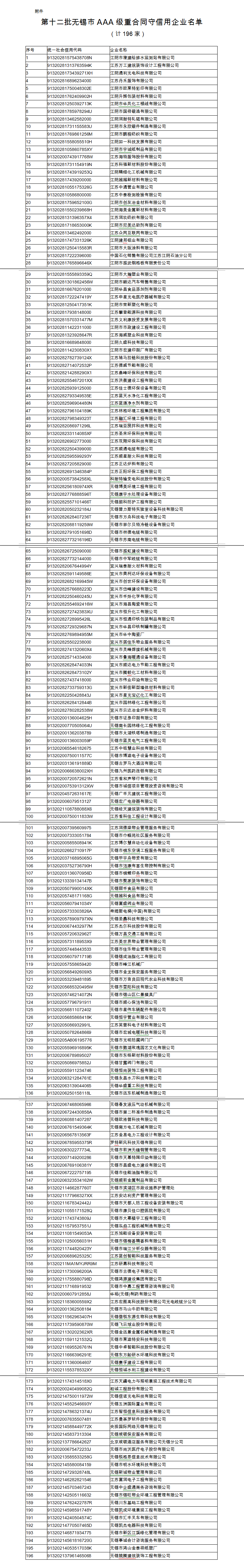 附件:第十二批無(wú)錫市AAA級(jí)重合同守信用企業(yè)名單(計(jì)196家)