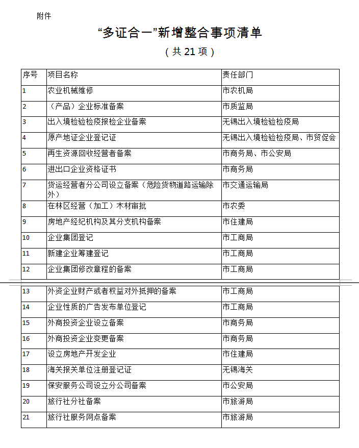 附件:“多證合一”新增整合事項清單