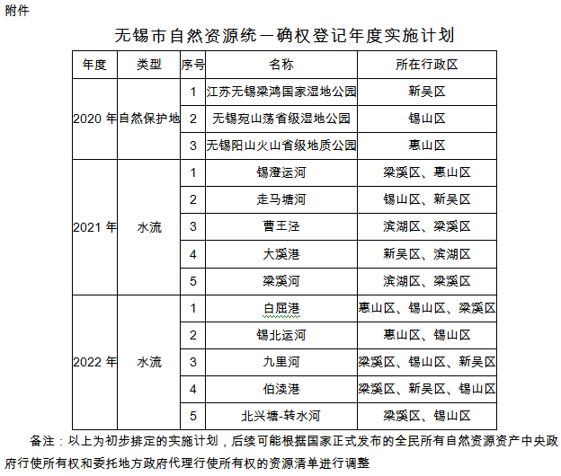 附件:無錫市自然資源統(tǒng)一確權(quán)登記年度實(shí)施計(jì)劃
