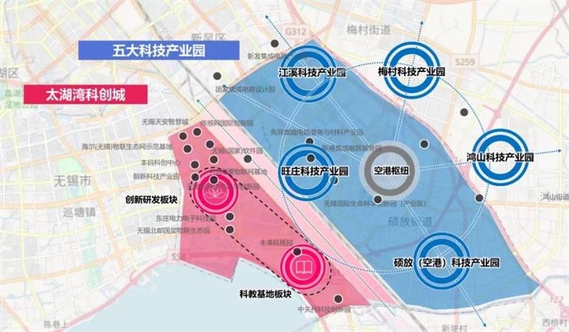 “五組團”即碩放(空港)科技產(chǎn)業(yè)園、旺莊科技產(chǎn)業(yè)園、江溪科技產(chǎn)業(yè)園、梅村科技產(chǎn)業(yè)園、鴻山科技產(chǎn)業(yè)園五大科技產(chǎn)業(yè)園,將承接創(chuàng)新要素外溢轉(zhuǎn)移,為重大項目發(fā)展提供必要的空間資源。