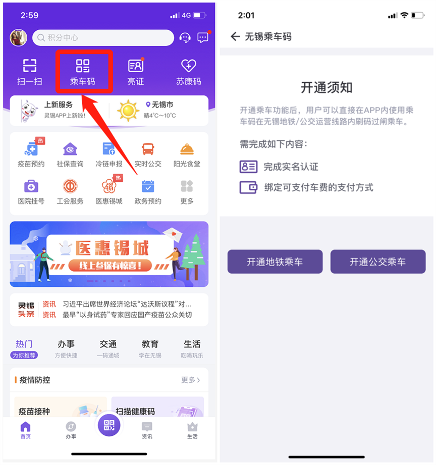點(diǎn)擊“靈錫”APP首頁(yè) —【乘車(chē)碼】
