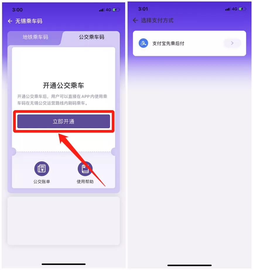 進(jìn)入【地鐵碼】和【公交碼】開(kāi)通界面