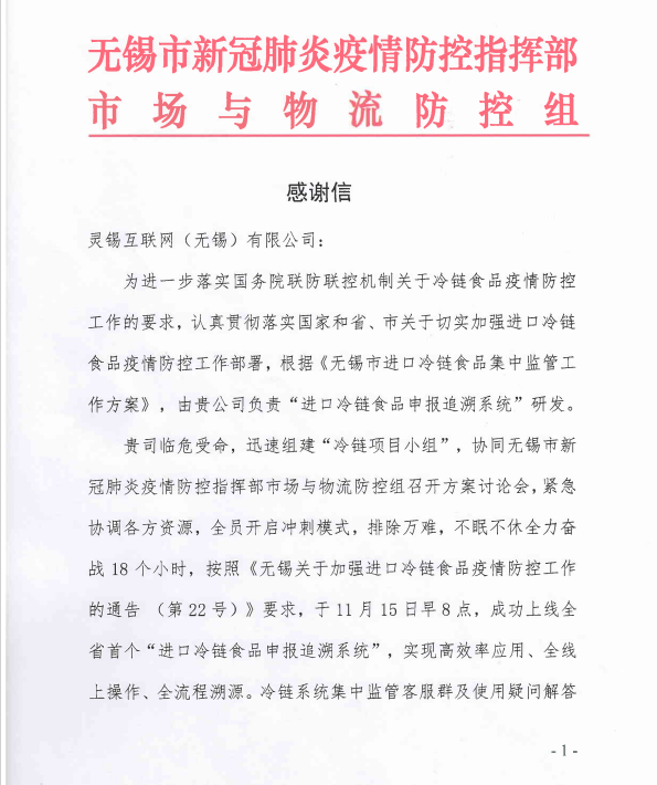 靈錫有效助力了本次無錫市政府相關(guān)部門針對進(jìn)口冷鏈?zhǔn)称返囊咔榉揽毓ぷ?!集中監(jiān)管倉入庫實(shí)行網(wǎng)上預(yù)約的機(jī)制,“靈錫”APP保障了無錫集中監(jiān)管倉的有效運(yùn)行,更助推了市內(nèi)各進(jìn)口冷鏈?zhǔn)称废嚓P(guān)企業(yè)和單位的高效申報(bào)、全程可追溯、結(jié)果隨時查。