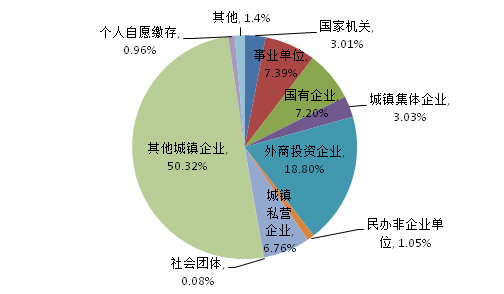 2021年二季度實(shí)繳職工數(shù)按不同性質(zhì)單位分類(lèi)占比圖