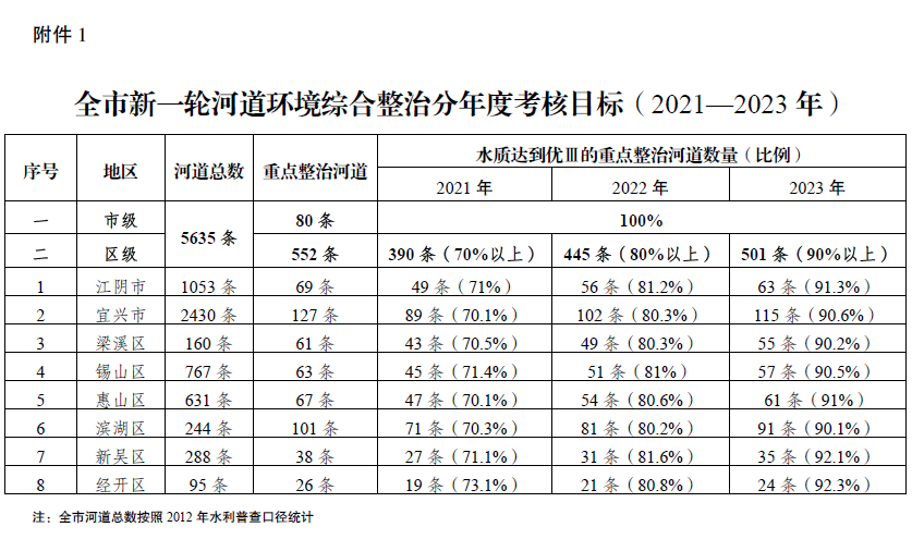 附件:1.全市新一輪河道環(huán)境綜合整治分年度考核目標(biāo)(2021—2023年)