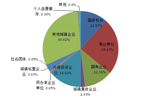 2021年三季度實(shí)繳職工數(shù)按不同性質(zhì)單位分類占比圖