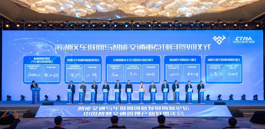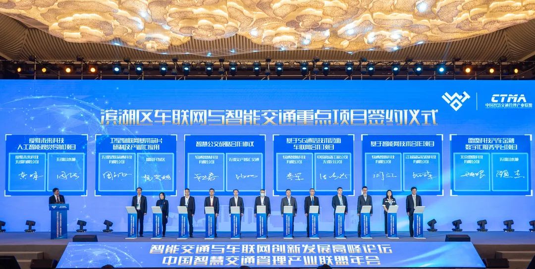 在智能交通與車聯(lián)網(wǎng)創(chuàng)新發(fā)展高峰論壇上,11個(gè)項(xiàng)目現(xiàn)場(chǎng)簽約,為濱湖車聯(lián)網(wǎng)發(fā)展注入新動(dòng)力。