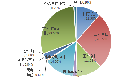 2021年四季度實繳職工數(shù)按不同性質(zhì)單位分類占比圖