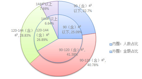 從貸款群體來看,剛需與改善型住房需求職工分別占貸款總?cè)藬?shù)的25.09%和68.28%。從單位性質(zhì)來看,以城鎮(zhèn)私營企業(yè)職工為主,貸款筆數(shù)和貸款金額占比分別為40.94%、39.26%。從購房面積來看,職工貸款購買90-120(含)㎡、120-144(含)㎡房屋居多,分別占貸款總?cè)藬?shù)的41.38%、26.89%。從主借人繳存基數(shù)來看,貸款主要以中、低收入職工為主,分別占貸款總?cè)藬?shù)的36.77%、59.55%,說明我市住房公積金貸款政策在保障剛需職工需求,體現(xiàn)住房公積金互助性方面發(fā)揮了較大的作用,住房公積金制度的初衷未改變。具體放貸結(jié)構(gòu)如下: