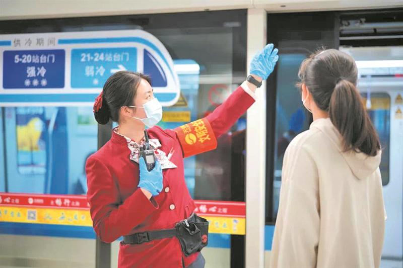 此外,地鐵“紅綬帶”文明引導(dǎo)員(如圖)在站廳、站臺(tái)和車(chē)廂內(nèi)持續(xù)開(kāi)展文明引導(dǎo)、車(chē)廂(站)執(zhí)法、日常巡視,引導(dǎo)乘客不亂扔雜物、不隨地吐痰、不損壞公共設(shè)施、不躺臥公共座椅等,助力打造“最干凈地鐵”軟環(huán)境,將乘坐地鐵打造成市民出行的最佳選擇。(孫倩茹 圖文報(bào)道)