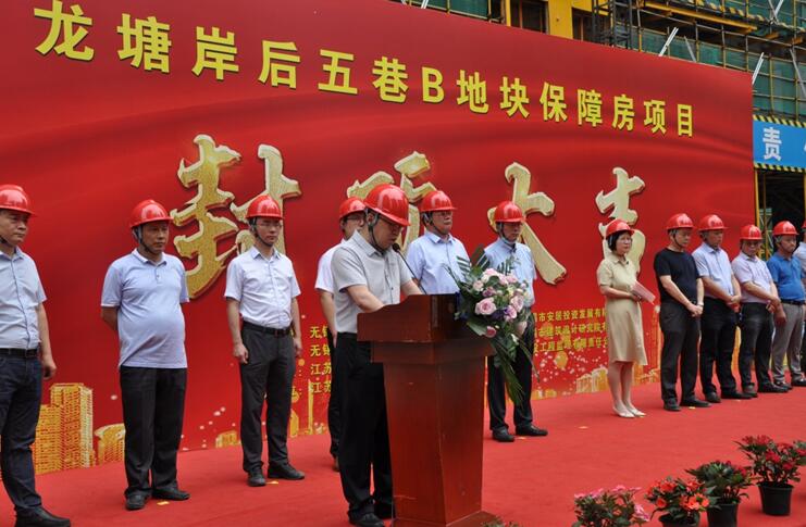6月24日上午,市級共有產(chǎn)權(quán)保障房建設(shè)項目——龍?zhí)涟逗笪逑顱地塊主體結(jié)構(gòu)全面封頂儀式在施工現(xiàn)場順利舉行。市住房城鄉(xiāng)建設(shè)局副局長孫曉鵬、市城建發(fā)展集團有限公司副總裁萬妮婭和市房屋管理服務(wù)中心主任曹振新等參加此次活動,共同見證這一重要時刻。