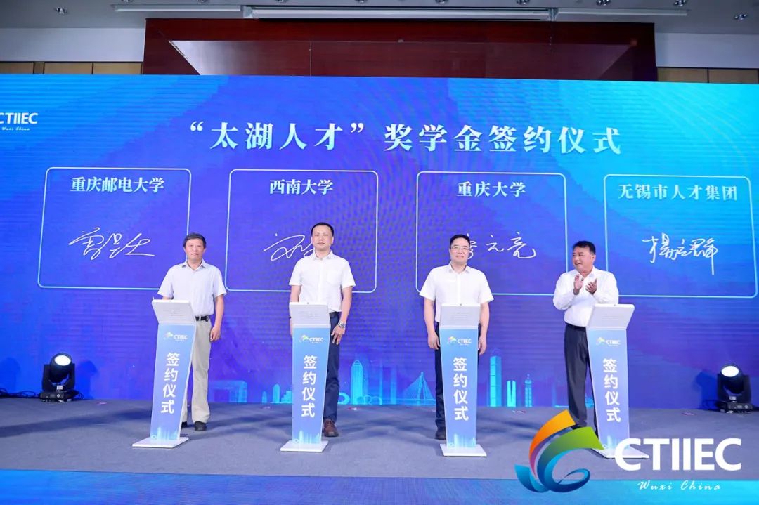 6月24日,在重慶賽區(qū)現(xiàn)場,無錫市人才集團(tuán)與重慶大學(xué)、重慶郵電大學(xué)、西南大學(xué)簽訂“無錫太湖人才獎學(xué)金”設(shè)立協(xié)議,深入推進(jìn)校地校企合作,架設(shè)引才用才橋梁,激勵重慶高校的優(yōu)秀學(xué)子奮發(fā)向上,創(chuàng)業(yè)無錫、創(chuàng)新濱湖。