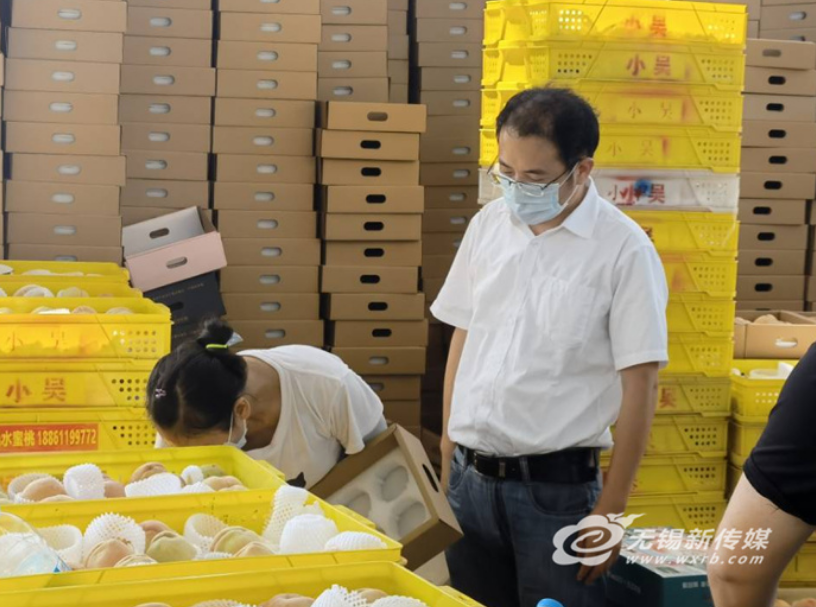 在堆滿桃盒的貨場里、在悶熱無風的桃林間、在賣桃受阻的桃農家中,江蘇省黨代表、無錫惠山區(qū)陽山鎮(zhèn)農業(yè)服務科科長、桃農協(xié)會黨總支書記、會長金唯新時時在奔波和接電話的狀態(tài)中。13日下午,滿頭大汗的金唯新聯(lián)系了幾家接單量大的水蜜桃電商,商議解決臨近尾聲的白鳳桃和即將上市的湖景桃“防疫”和“銷售”兩手抓的問題。在今年6月啟動水蜜桃銷售季以來,高級農藝師金唯新“轉型”服務桃農的工作專班班長,帶領百余人員攻堅克難,全力推動桃產業(yè)鏈的穩(wěn)定發(fā)展。