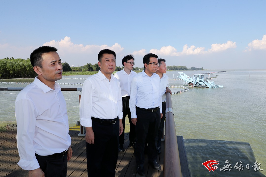 安全度夏,措施一絲不茍。在許仙港藻水分離站看到,多臺(tái)增氧曝氣裝置全力運(yùn)轉(zhuǎn),兩艘加壓控藻船正在開展作業(yè)。杜小剛詳細(xì)了解今年太湖無(wú)錫水域水質(zhì)、藻情、清淤等情況,叮囑要加強(qiáng)監(jiān)測(cè)預(yù)警,根據(jù)水質(zhì)、藻情科學(xué)調(diào)度水利工程,周密組織做好藻水分離、淤泥固化等后續(xù)工作,確保閉環(huán)管理、順暢運(yùn)行。經(jīng)過綜合整治后,新港-廟港段沿湖大堤藍(lán)藻聚集蘆葦蕩的現(xiàn)象大為改觀。杜小剛走上打撈平臺(tái),查看加壓控藻深井運(yùn)行和周圍環(huán)境整治情況,要求不斷提高蘆葦蕩區(qū)域的水體流動(dòng)性,充分發(fā)揮湖濱生態(tài)濕地帶“消化”藍(lán)藻、保灘固堤、凈化水質(zhì)等功能,構(gòu)建起太湖岸基生態(tài)屏障。南泉水源廠是我市重要飲用水水源地之一,今年以來(lái)供水生產(chǎn)穩(wěn)定、出水安全優(yōu)質(zhì),主要水質(zhì)指標(biāo)均優(yōu)于國(guó)標(biāo)?,F(xiàn)場(chǎng)看到,智能化無(wú)人監(jiān)測(cè)預(yù)警船正在水源地周邊開展實(shí)時(shí)監(jiān)測(cè)。杜小剛來(lái)到沙渚水源地,站在棧橋上俯身查看水質(zhì),詳細(xì)詢問水源地安全度夏智慧管控平臺(tái)運(yùn)行情況,叮囑要加強(qiáng)水質(zhì)預(yù)警監(jiān)測(cè),制定優(yōu)化供水應(yīng)急方案,注重制水工藝改進(jìn),不斷提高飲用水水質(zhì),為我市生活生產(chǎn)用水提供安全可靠保障。