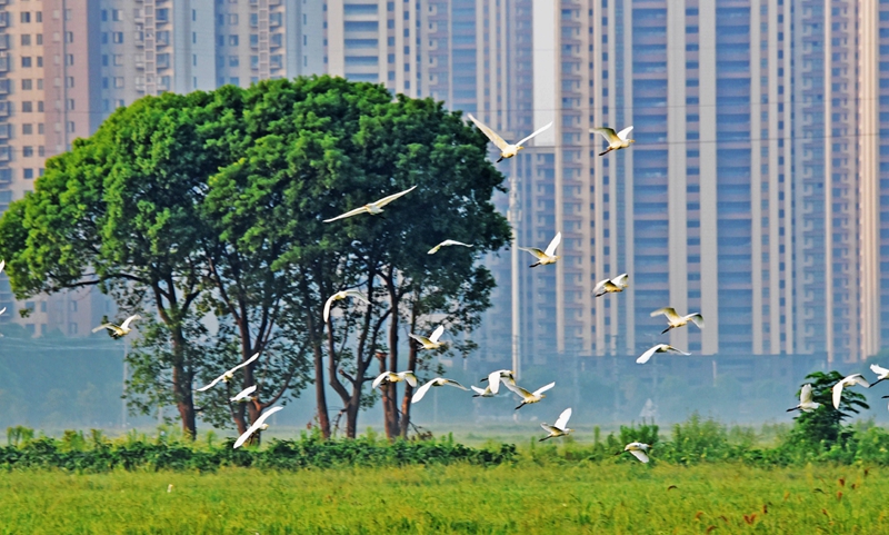 據(jù)說,白鷺素有“環(huán)保鳥”美譽,對大氣和水質(zhì)極端挑剔。如今錫城白鷺齊飛的美景,應該說是人與自然和諧共生的最好詮釋。