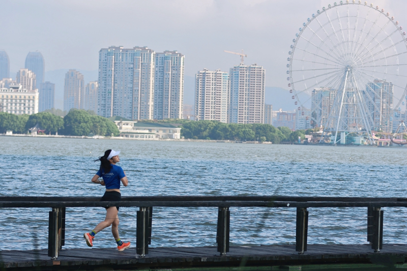 淺秋似夢,風(fēng)甜光暖,日間有余夏,日落有涼秋。早起晨練的人似乎一下子就多了起來,有一路小跑的,有戴著耳機邊聽邊走的……踏著矯捷輕快的步伐,每個人的臉上都綻放著快樂的神情。微風(fēng)輕拂的世界里,清爽而明麗的感覺越發(fā)膨脹。廣場上,身著練功服的人們個個精神矍鑠,容光煥發(fā),全神貫注地在打著太極拳。公園里,鴿子并不怕人,跳上掌心爭食,滴溜圓的眼睛坦然地看著人們。孩子們在林間奔跑嬉戲,在巷弄中閑坐歡笑……暮色如柔美的輕紗般拉下了帷幕,憑水臨風(fēng),氤氳四野,輕舟一葉載向獨辟蹊徑的遠(yuǎn)方。
