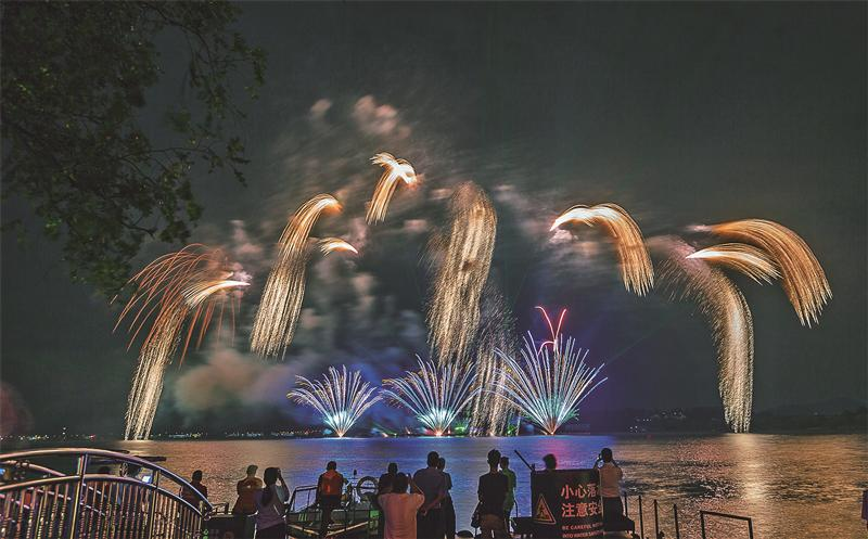 禮贊祖國(guó),華夏共賀。整整五日,太湖夜空,都將點(diǎn)綴著五光十色的焰火,縈繞著靈動(dòng)躍然的音樂旋律。泛舟太湖,遙望煙花與音樂共譜舞曲?;饦溷y花照亮迢迢銀河的同時(shí),也映照出光影里的巧笑倩兮。這是黿頭渚為游客送上的佳節(jié)厚禮,愿如此良辰美景,可與世人共享。