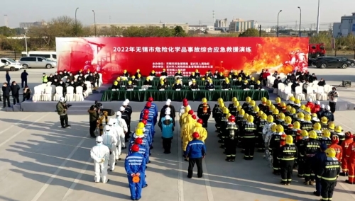 12月15日,2022年無(wú)錫市危險(xiǎn)化學(xué)品綜合應(yīng)急救援演練在位于宜興市官林鎮(zhèn)的新材料產(chǎn)業(yè)園區(qū)?;吠\噲?chǎng)舉行。
