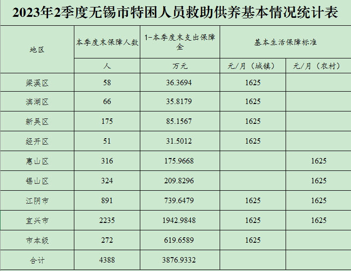 2023年二季度無錫市特困人員救助供養(yǎng)基本情況統(tǒng)計(jì)表 |