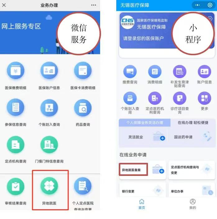 “無錫醫(yī)保”微信公眾號(hào)—業(yè)務(wù)辦理—小程序—異地就醫(yī)備案;