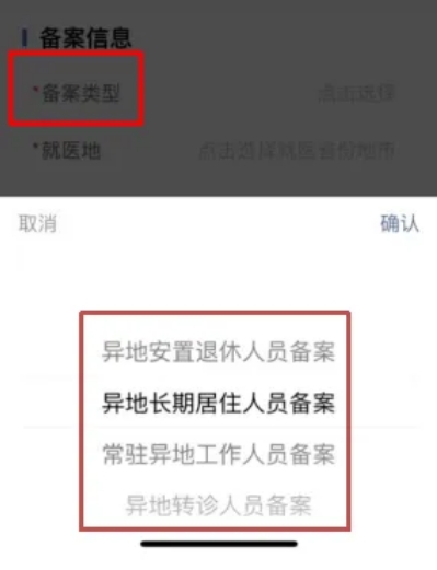 第六步:選擇備案類型(下拉框有下列5個(gè)選項(xiàng)可供選擇)、就醫(yī)地、備案開始時(shí)間一般默認(rèn)為當(dāng)天。