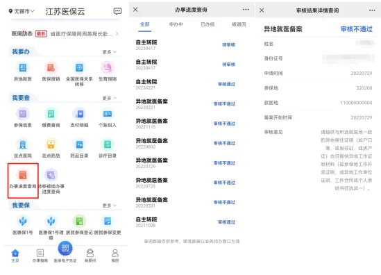 提交備案申請(qǐng)后,可以查詢審核結(jié)果。“無錫醫(yī)保”公眾號(hào)可返回“網(wǎng)上服務(wù)專區(qū)”,點(diǎn)擊“審核結(jié)果查詢”;“無錫醫(yī)保小程序”返回“異地就醫(yī)備案”,點(diǎn)擊“審核結(jié)果查詢”。