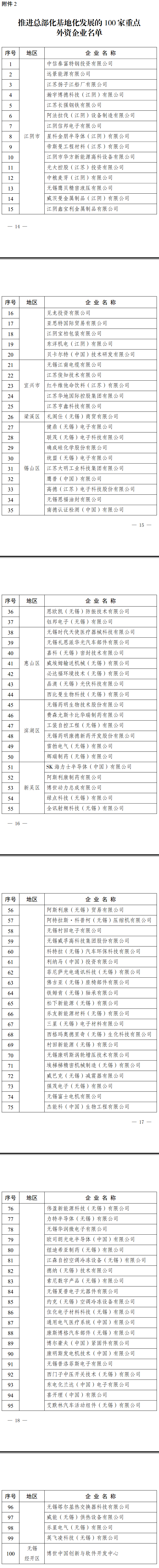 2.推進總部化基地化發(fā)展的100家重點外資企業(yè)名單
