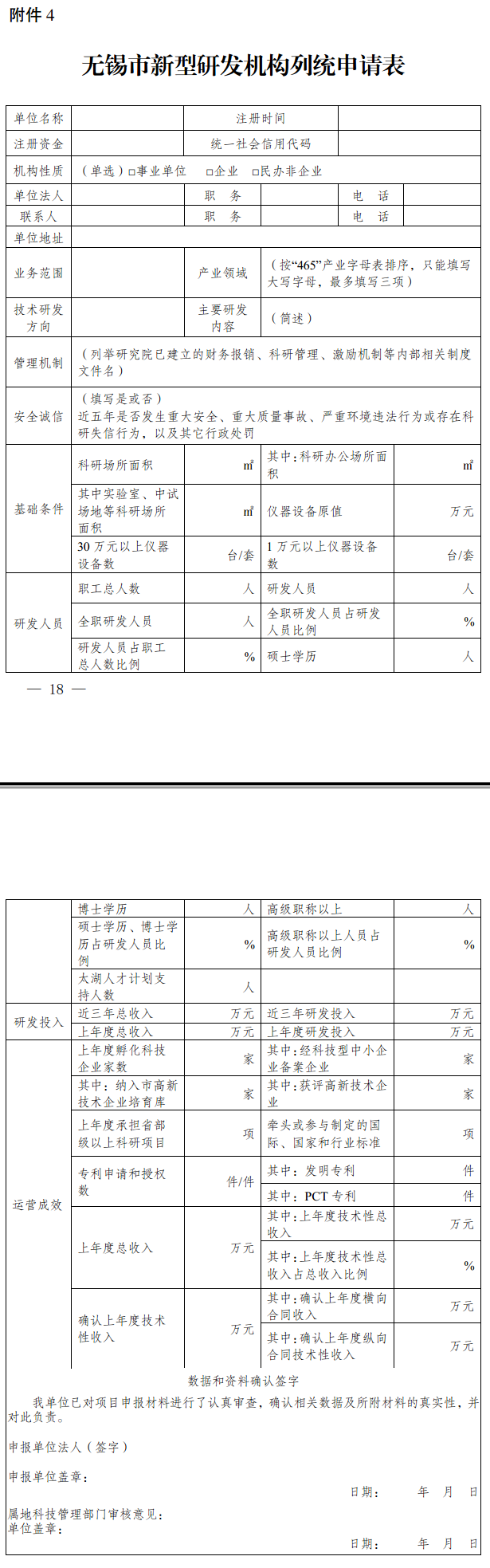 4.無錫市新型研發(fā)機(jī)構(gòu)列統(tǒng)申請表