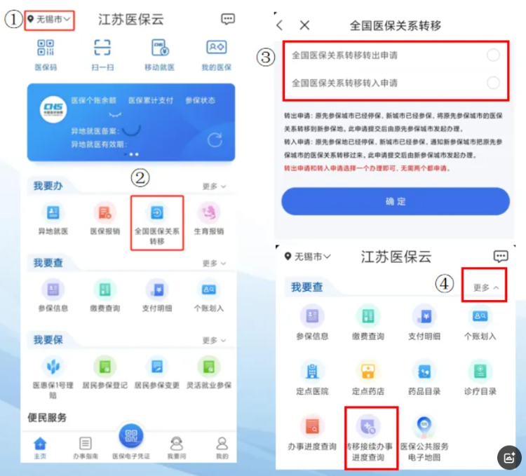 4.查詢辦理進度與申報結(jié)果:回到主頁,找到”我要查”,點擊更多→轉(zhuǎn)移接續(xù)辦事進度查詢。也可攜帶有效證件至窗口查詢,或撥打醫(yī)保服務(wù)熱線:0510-12393