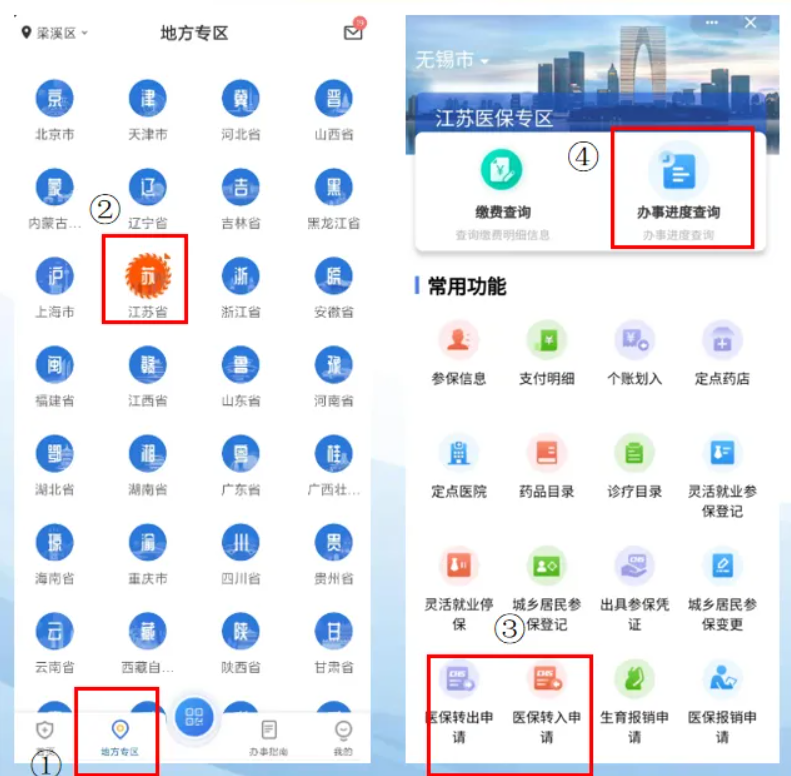 國家醫(yī)保服務(wù)平臺:地方專區(qū)→江蘇省→辦事進度查詢。