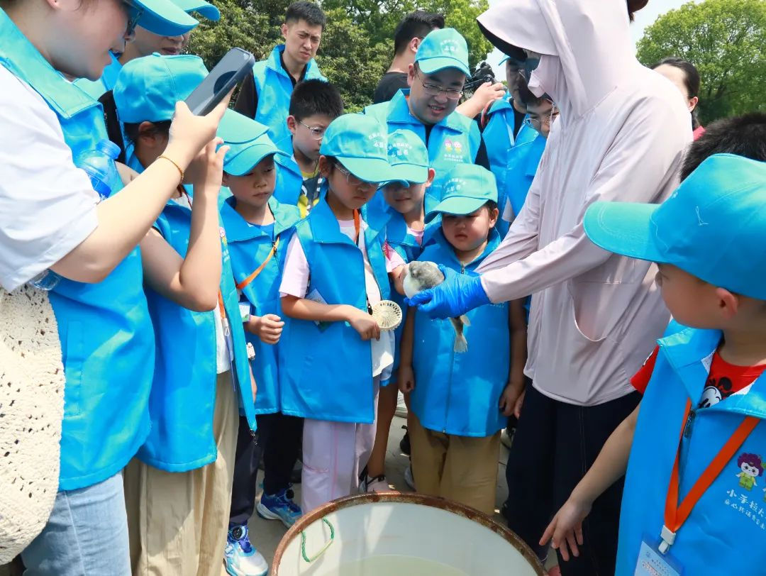 在申港河豚漁村,營員們學習了河豚、鰣魚的棲息環(huán)境及生活習性,親手觸摸了“生氣”的河豚,了解了長江大保護“守江人”的故事,共同領略了長江大保護之美。
