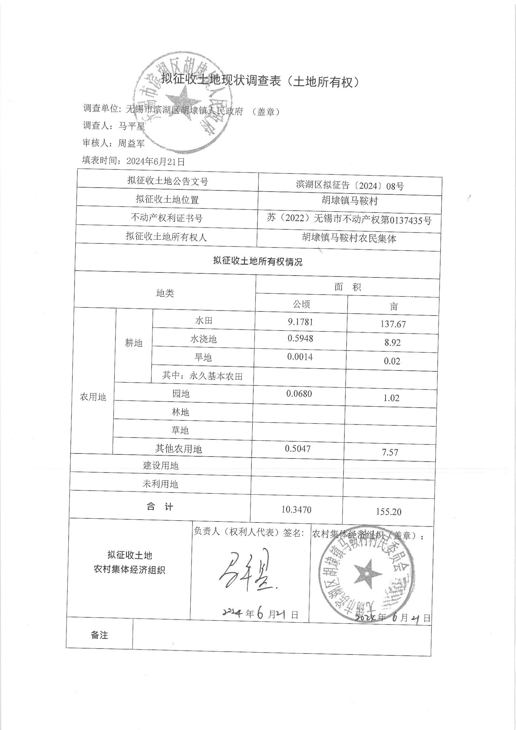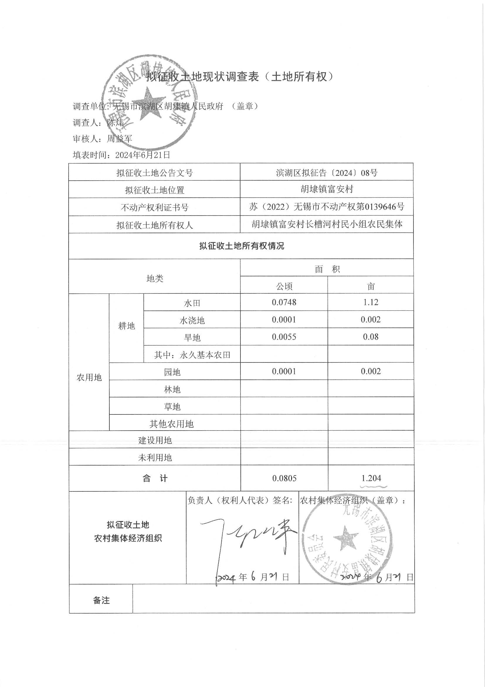 無(wú)錫市濱湖區(qū)2024年度第4批次村鎮(zhèn)建設(shè)用地-土地現(xiàn)狀調(diào)查表