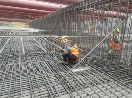 在施工過程中,建設(shè)團隊陸續(xù)克服受力復(fù)雜、接口多、防水難度大等諸多難點,提前謀劃并扎實推進(jìn)首塊底板澆筑的準(zhǔn)備工作。其中,防水施工是質(zhì)量控制和施工技術(shù)難點,涉及主體自防水、外防水及施工縫、變形縫等各環(huán)節(jié),任一環(huán)節(jié)不佳都將影響整體防水效果。為此,建設(shè)團隊對導(dǎo)線點和水準(zhǔn)點反復(fù)復(fù)核,扎實做好工程結(jié)構(gòu)測量放樣,全面加強全過程控制,有效確保了每一道工序的防水質(zhì)量。