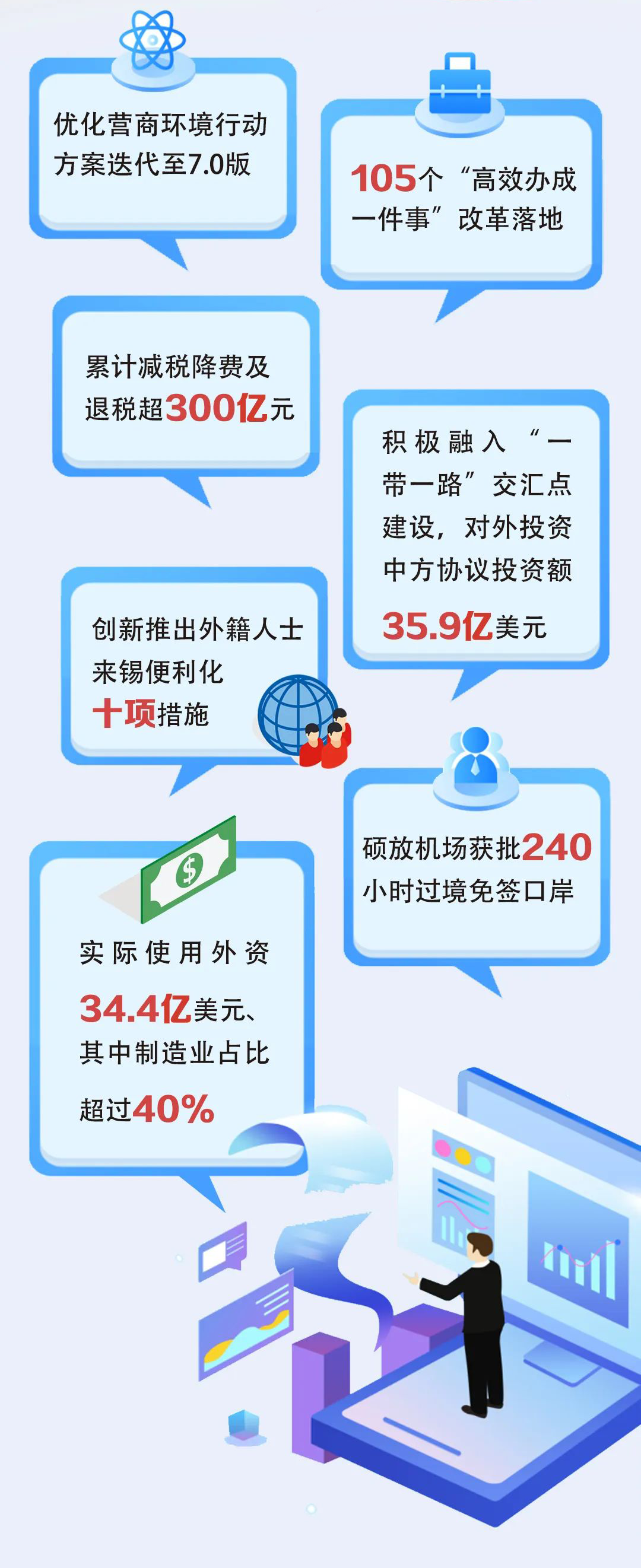 2024年,無錫,“優(yōu)”潮涌動(dòng)!營(yíng)商環(huán)境優(yōu)化助力企業(yè)騰飛,優(yōu)化營(yíng)商環(huán)境行動(dòng)方案7.0版、“高效辦成一件事”、減稅降費(fèi)、外籍人士來錫便利化十項(xiàng)措施……無錫通過簡(jiǎn)化審批流程、優(yōu)化政務(wù)服務(wù),切實(shí)為企業(yè)減負(fù)增效,真正做到企有所呼、政必有應(yīng),營(yíng)造政策透明、服務(wù)高效、市場(chǎng)開放的環(huán)境,使企業(yè)家們“游刃有余”,充分激發(fā)創(chuàng)新活力與商業(yè)潛能。