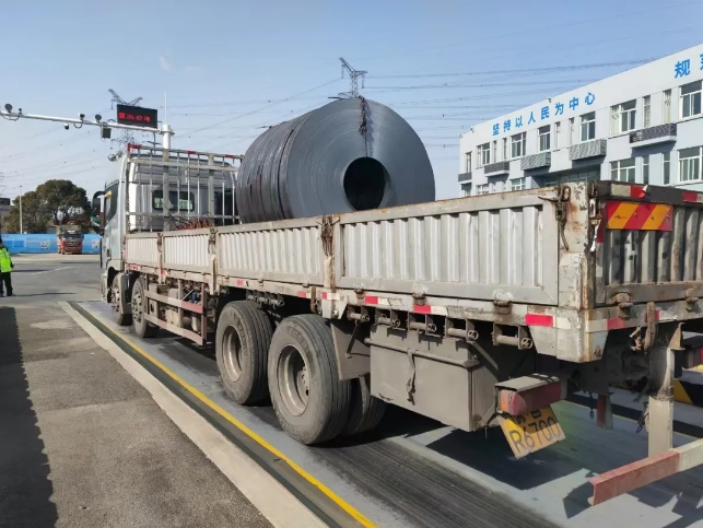 2025年2月7日上午10時左右,市交通運輸綜合行政執(zhí)法支隊執(zhí)法人員在路檢路查時發(fā)現(xiàn)兩輛運輸鋼卷的貨車疑似違法超限運輸。執(zhí)法人員立即示意兩車駕駛員將車輛??恐涟踩范谓邮軝z查,就近引導(dǎo)至超限檢測站進行稱重。