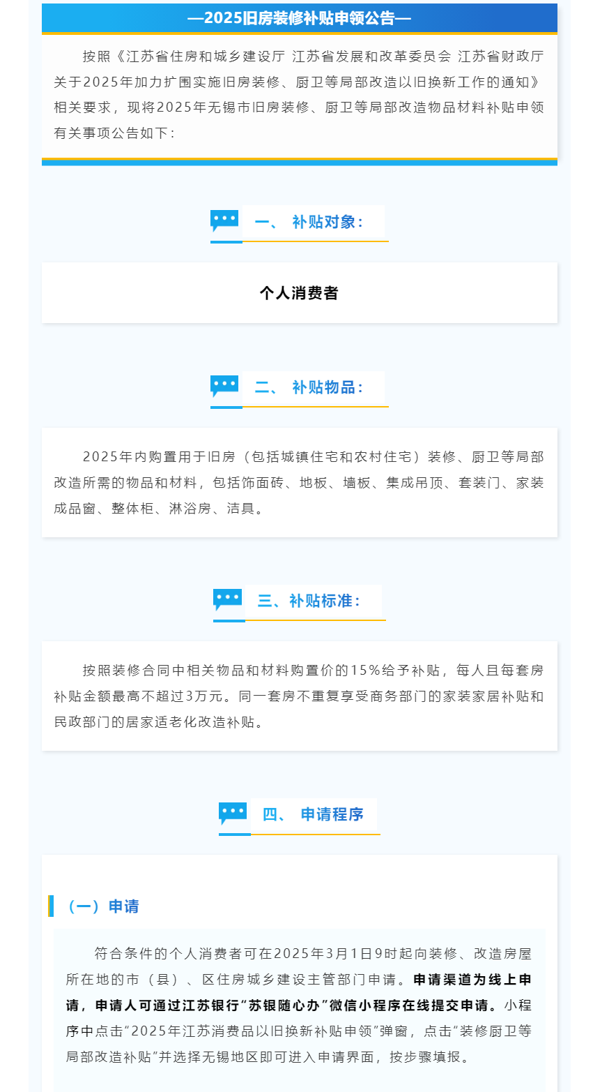2025年舊房裝修廚衛(wèi)等局部改造物品材料補貼申領(lǐng)公告 |