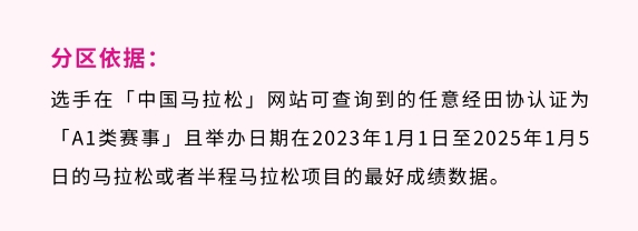 如果你符合該分區(qū)對應(yīng)的報名項(xiàng)目且最好成績達(dá)到該分區(qū)對應(yīng)的成績門檻(馬拉松或半程馬拉松中的任意一個)就會被編入相應(yīng)分區(qū)與旗鼓相當(dāng)?shù)倪x手一同起跑!