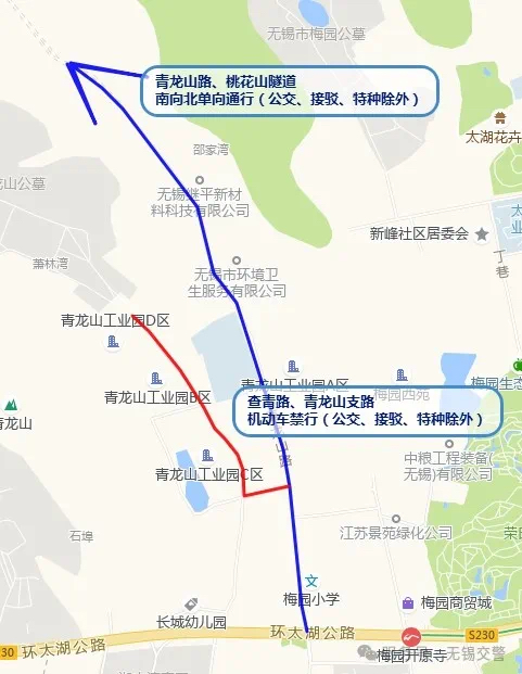 1、青龍山路實行機動車(公交車、接駁車、特種車輛除外)由南向北單向通行,禁止由北向南通行;