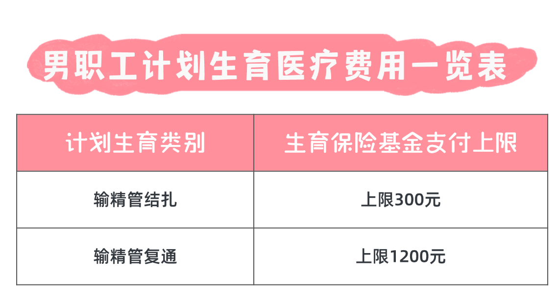 參加生育保險(xiǎn)的職工實(shí)施輸精管結(jié)扎以及復(fù)通手術(shù)等,所發(fā)生的符合生育保險(xiǎn)規(guī)定的醫(yī)療費(fèi)用,生育保險(xiǎn)基金支付標(biāo)準(zhǔn)為: