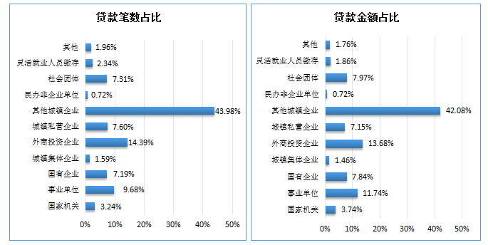 2025年一季度職工貸款筆數(shù)及貸款金額按單位性質(zhì)分類占比圖