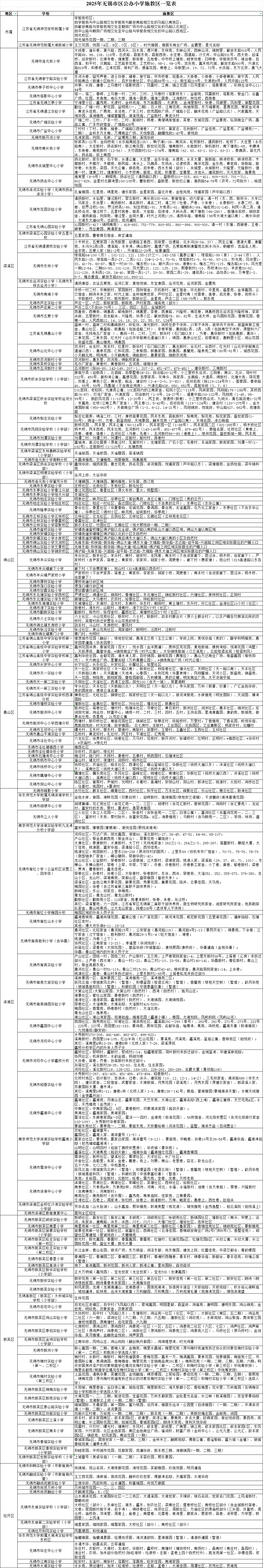 2025年無錫市區(qū)公辦小學(xué)施教區(qū)一覽表