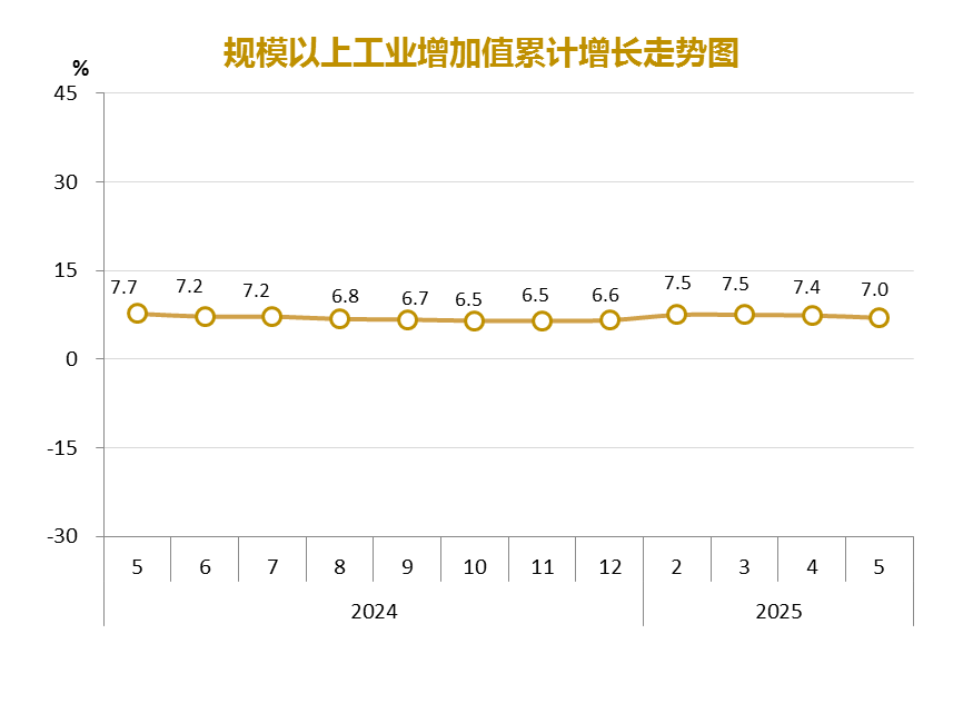 | 內(nèi)容概述 | 2025年1-5月規(guī)模以上工業(yè)增加值增長7.0% | ||||
