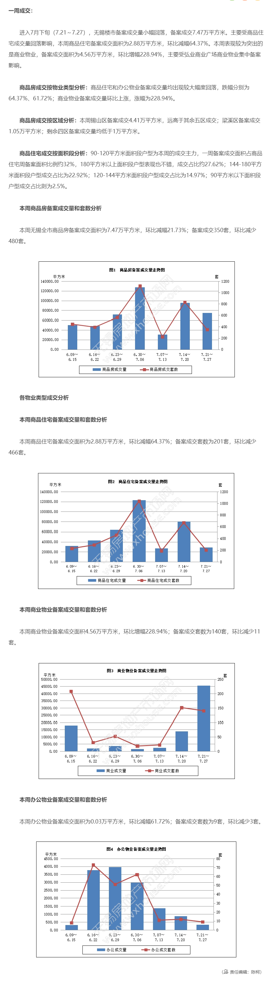 內(nèi)容概述 7.21~7.27無(wú)錫商品房一周備案成交7.47萬(wàn)平方米