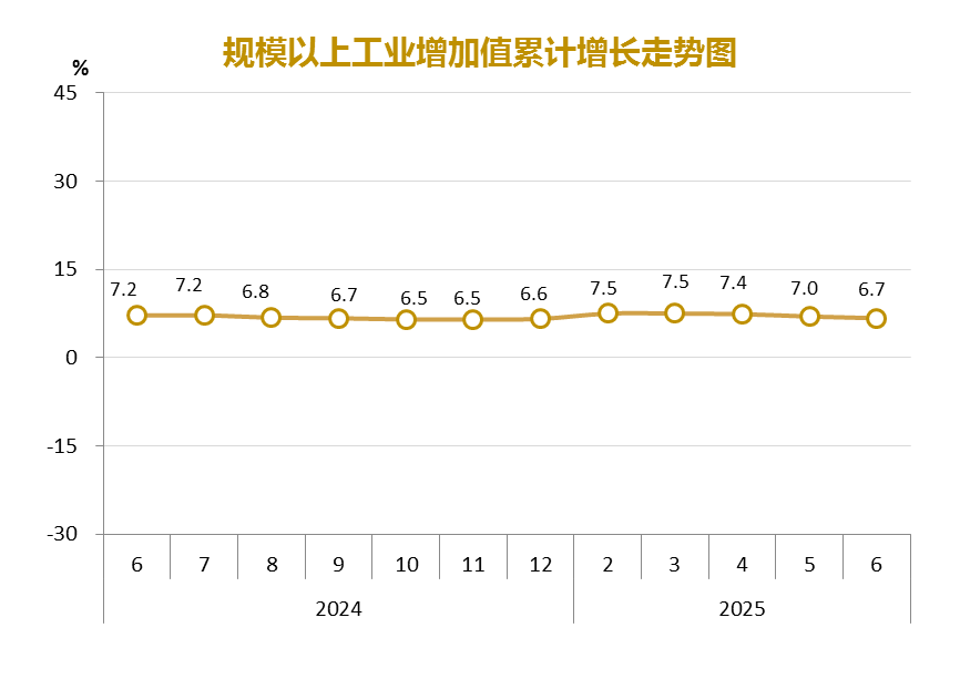 2025年1-6月規(guī)模以上工業(yè)增加值增長6.7%