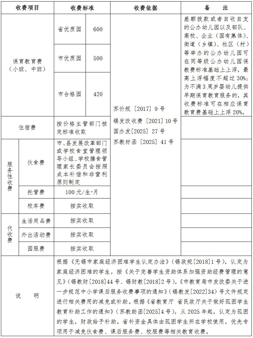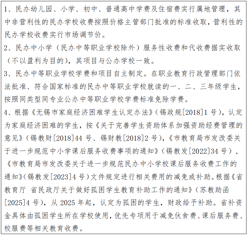 無錫市區(qū)民辦中小學(xué)(幼兒園)收費(fèi)說明