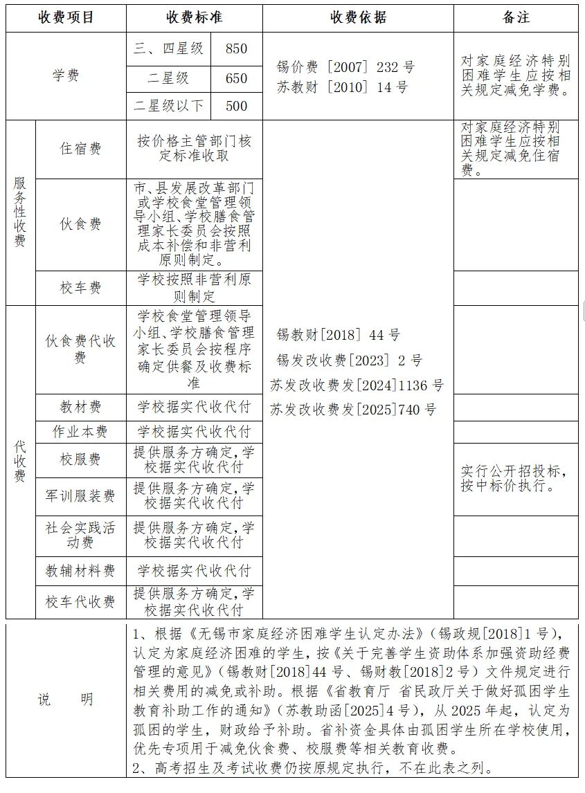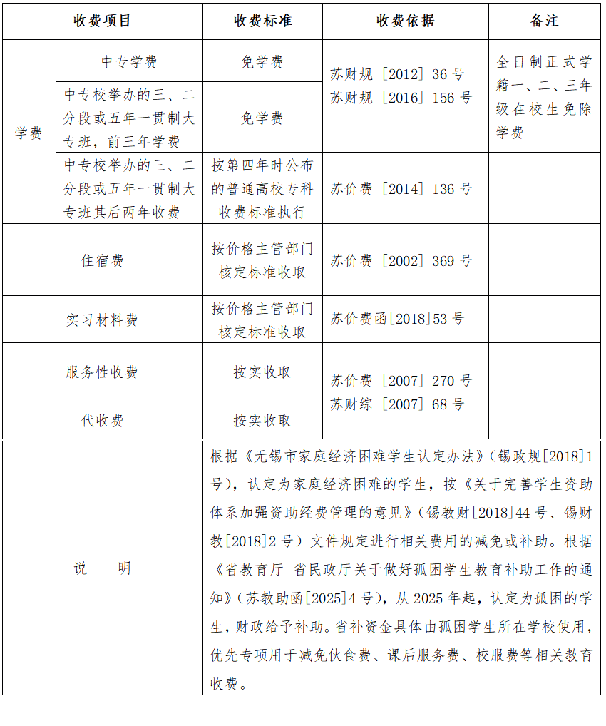 無錫市公辦中等職業(yè)學(xué)校收費(fèi)表
