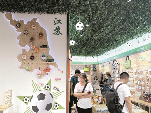 郵局在保留常規(guī)寄遞功能的同時,更突出了足球與文化展示。展柜里陳列著《比賽第一 友誼第十四》主題郵折、惠山映月里異形明信片、大耳狗《綠茵狂想》徽章等文創(chuàng)產(chǎn)品。值得一提的是,郵局特別推出了無錫主題、惠山主題、“蘇超”主題和郵政主題四大類特色產(chǎn)品,其中原創(chuàng)類、首發(fā)類占比超過一半,讓市民和游客能夠在這里體驗(yàn)到別具一格的郵政創(chuàng)新服務(wù)。不少游客拿著新買的郵品當(dāng)場蓋上特別設(shè)計的“首日紀(jì)念章”,把郵局體驗(yàn)變成一份即時紀(jì)念。