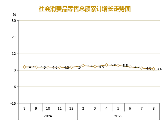 2025年1-8月社會(huì)消費(fèi)品零售總額增長3.6%